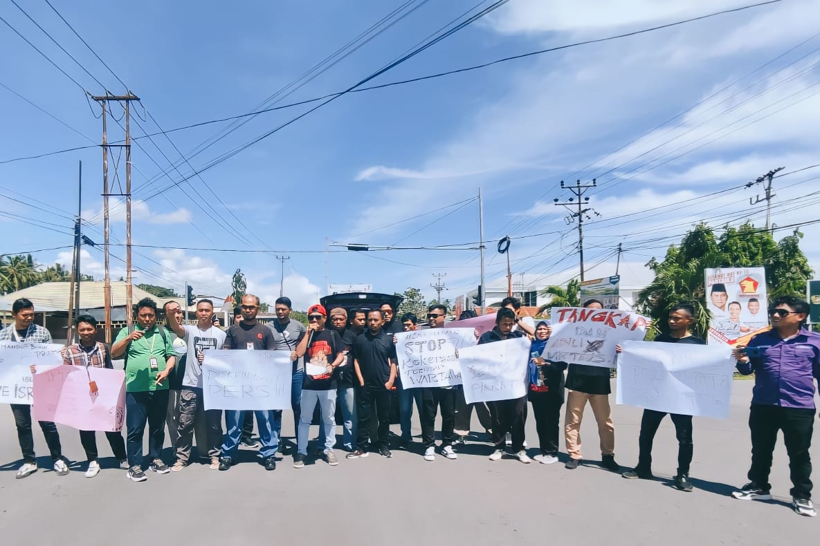 Dulohupa.id – Puluhan wartawan menggelar aksi unjuk rasa di Kantor Mapolres Pohuwato, Jumat (17/2) pagi. Wartawan yang tergabung dalam Jurnalis Pohuwato Bersatu itu mendesak kepolisian untuk segera menangkap pelaku kasus penganiayaan wartawan ynag terjadi belum lama ini. Para wartawan juga meminta kepolisian untuk menseriusi kasus kekerasan pers tersebut.