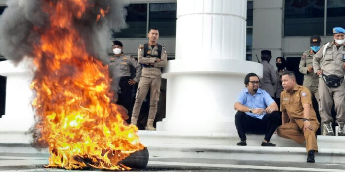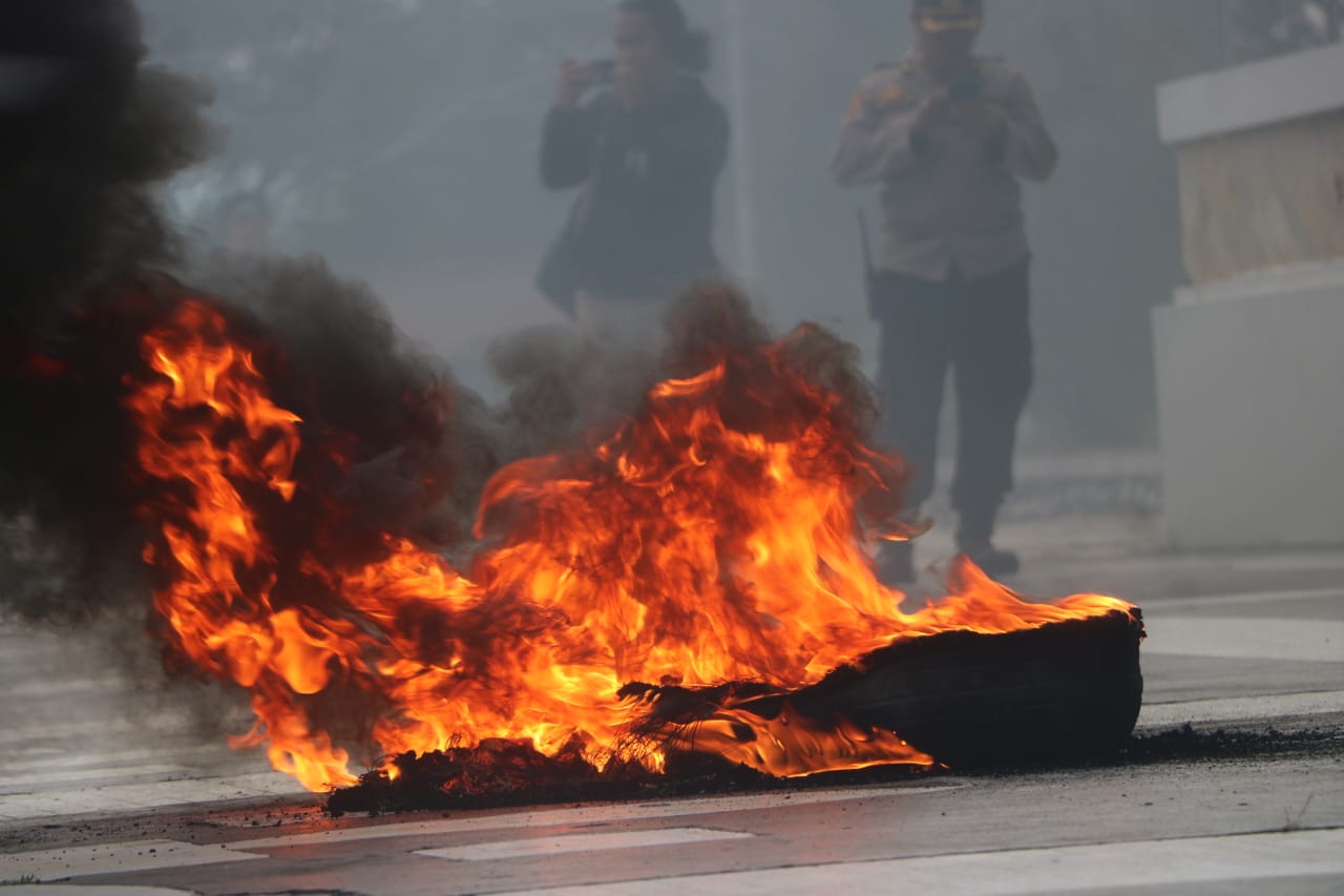 Beberapa lama kemudian, massa aksi mulai bergerak masuk ke halaman kantor DPRD Provinsi Gorontalo, dan langsung melakukan aksi bakar ban. Sejumlah pejabat dan staf DPRD Provinsi Gorontalo sendiri nampak keluar dan menyaksikan aksi mahasiswa. Begitupun sejumlah anggota DPRD Provinsi Gorontalo ikut keluar menyaksikan aksi mahasiswa.