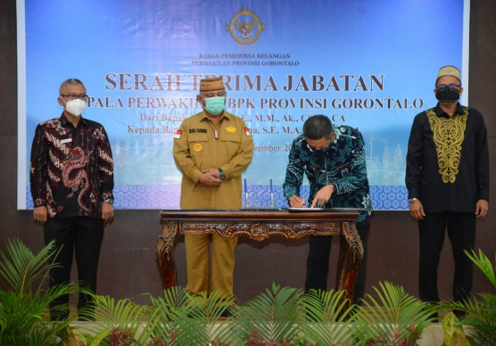DULOHUPA.ID- Sertijab kepala BPK perwailan Gorontalo yang lama kepada yang baru dilakukan siang tadi, Selasa (17/11/2020) di kantor BPK Perwakilan Gorontalo dihadiri oleh auditor utama VI BPK RI Dori Santosa.