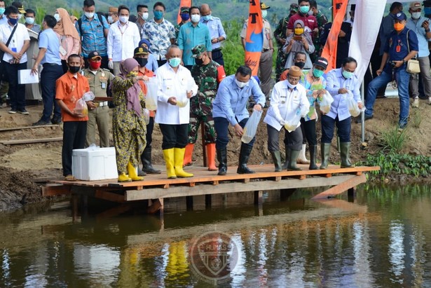 Dulohupa.id – Sebanyak 7,9 Miliar rupiah diberikan Menteri Kelautan dan Perikanan (MKP) Edhy Prabowo untuk nelayan di lima kabupaten dan kota di Gorontalo. Bantuan itu diserahkan langsung oleh Edhy usai menabur benih udang vaname di Desa Mootinelo, Kecamatan Kwandang, Kabupaten Gorontalo Utara, Kamis (11/6/2020).