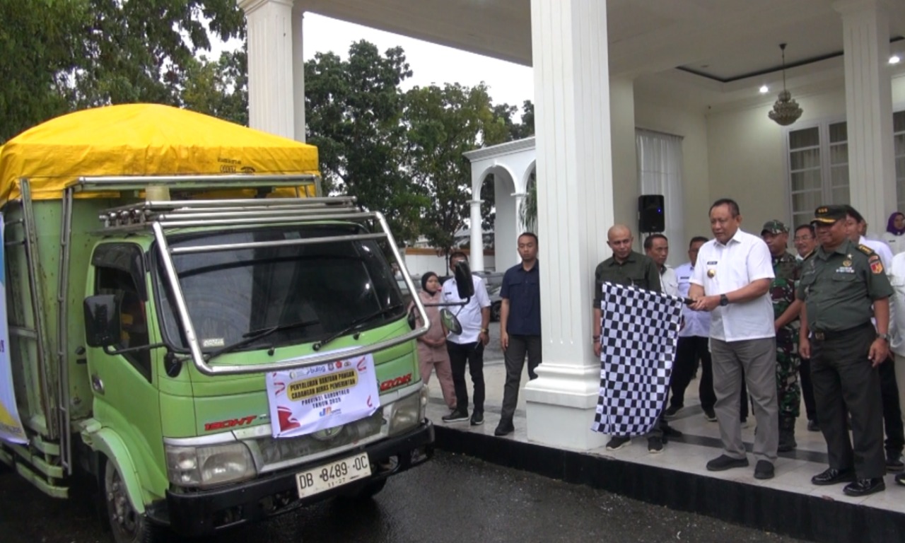 Pelepasan distribusi beras dilakukan Gubernur Gorontalo Gusnar Ismail dengan melepas armada yang memuat beras. Setidaknya sebanyak 2.325 Ton beras kini siap disalurkan untuk 116.276 keluarga penerima manfaat yang tersebar di seluruh wilayah Provinsi Gorontalo.