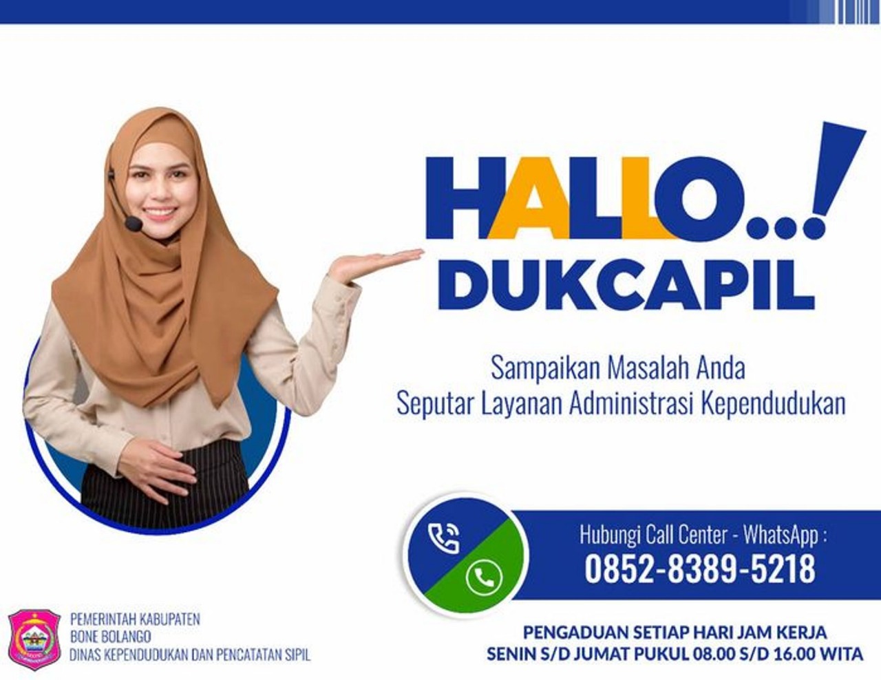 Dulohupa.id- Disdukcapil Bone Bolango membuka layanan melalui Whatsapp untuk mempermudah pelayanan administrasi kependudukan di wilayah tersebut.