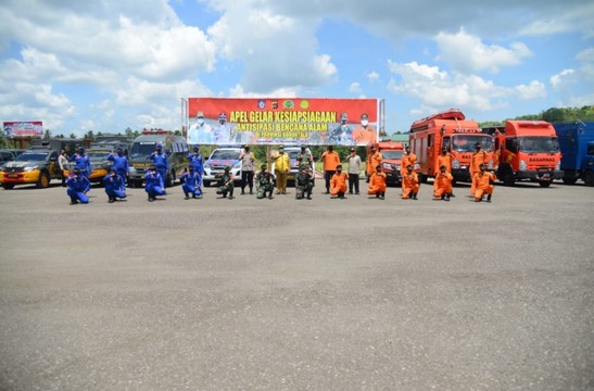 Apel kesiapsiagaan bencana memamerkan alat dan kendaraan operasional penanganan bencana. Selain kesiapan personil dan SOP penanganan, perawatan alat dan kendaraan operasional diminta dilakukan secara berkala agar siap digunakan sewaktu-waktu. (*prov)