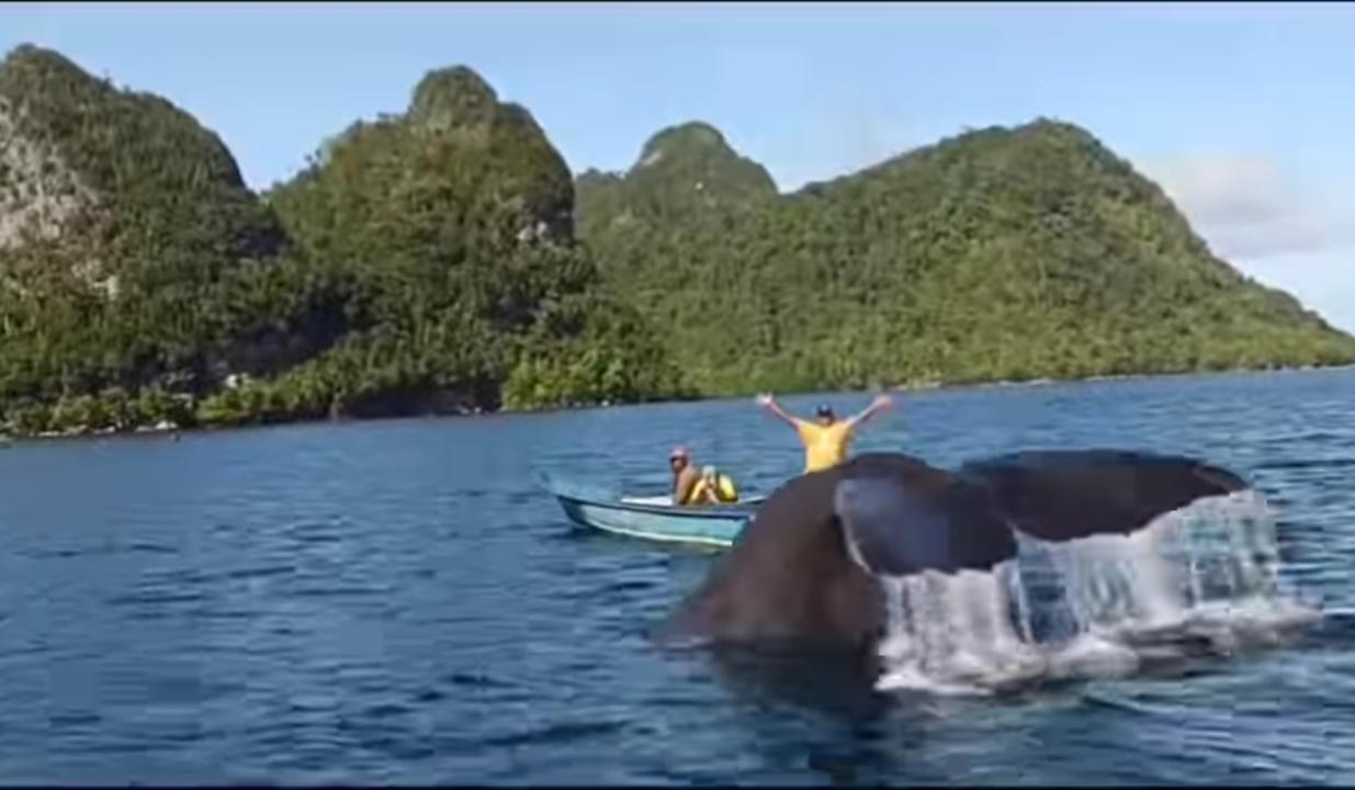 Dalam video tersebut memperlihatkan beberapa orang sedang menonton ikan paus yang melintasi perairan dekat Pulau Misool, Raja Ampat, Papua Barat Daya.