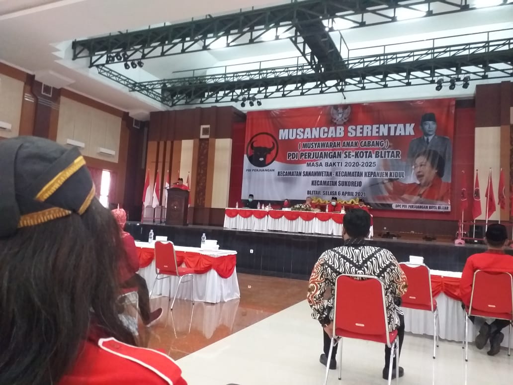 Dulohupa.id- Wali Kota Blitar, Santoso bersama Wakil Wali Kota, Tjutjuk Sunario, menghadiri Muscab (musyawarah anak cabang) PDIP se-Kota Blitar masa bakti 2021-2024 di Gedung Kesenian Kota Blitar, Selasa (6/4).